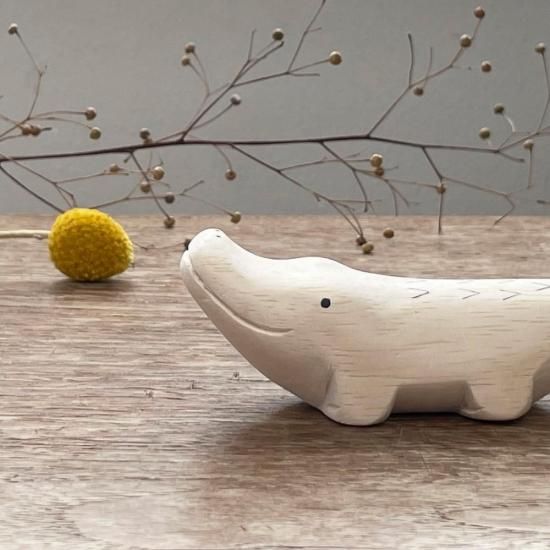 さらりとした肌触りの白い無垢木材を、ひとつひとつ手作業で彫りだして作られた「ぽれぽれ動物」。