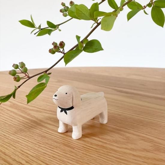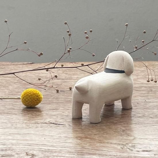 WOODEN ORNAMENT/POLEPOLE ANIMAL DACHSHUND WHITE