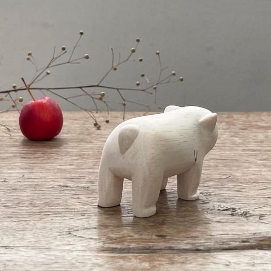 さらりとした肌触りの白い無垢木材を、ひとつひとつ手作業で彫りだして作られた「ぽれぽれ動物」。